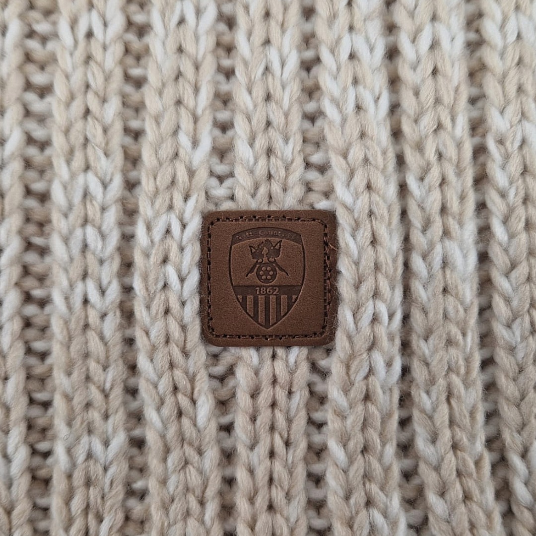 Cream ribbed scarf with brown crest stamp